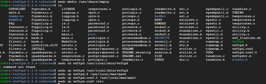 문제 없이 vsftpd 바이너리가 동일한 폴더에 생긴 것을 확인할 수 있다.