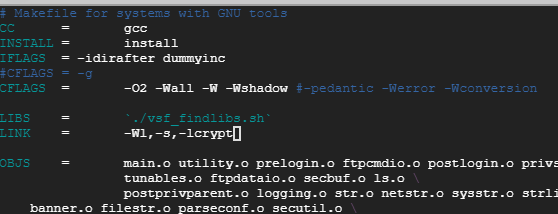 vsftpd 폴더로 이동하여 Makefile의 linker 플래그 값에 -lcrypt값을 추가해주어야한다.