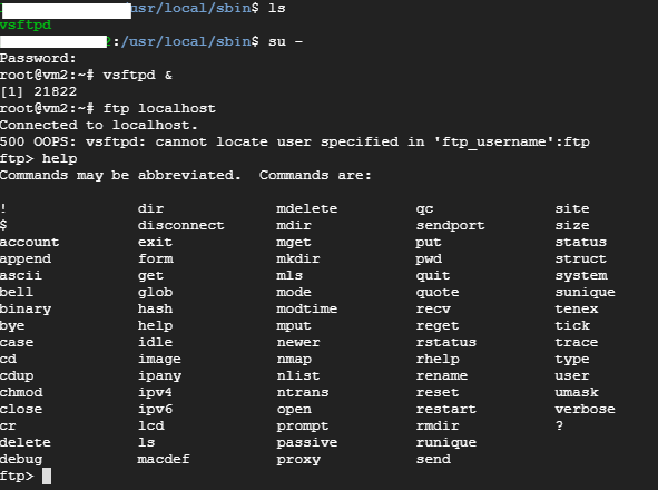 다음으로 vsftpd 바이너리를 실행해 localhost로 연결할 수 있는지 확인하였다.