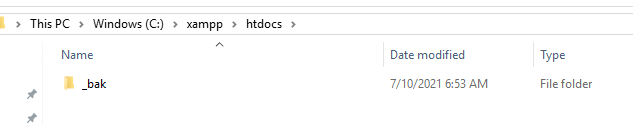 침투 테스팅 환경을 구성하기 위해, 먼저 C:\xampp\htdocs 경로에 접근해 XAMPP 호스팅 폴더를 정리한다.