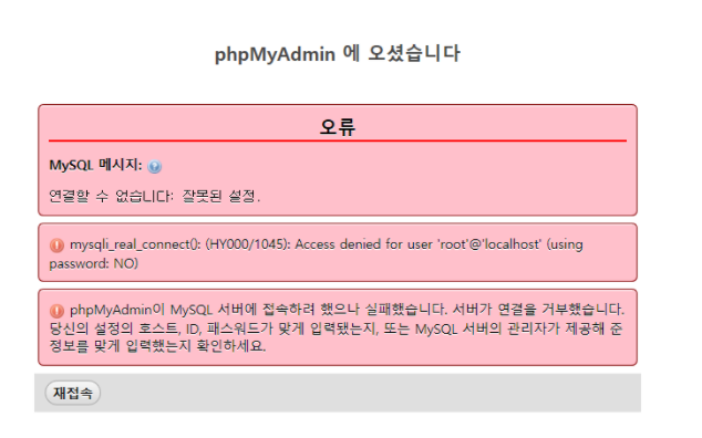 이 과정을 거치고 나서 MySQL의 Admin으로 들어가니