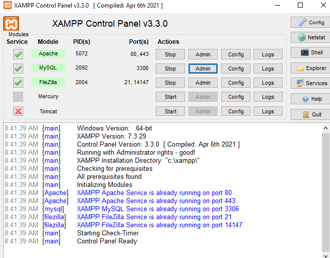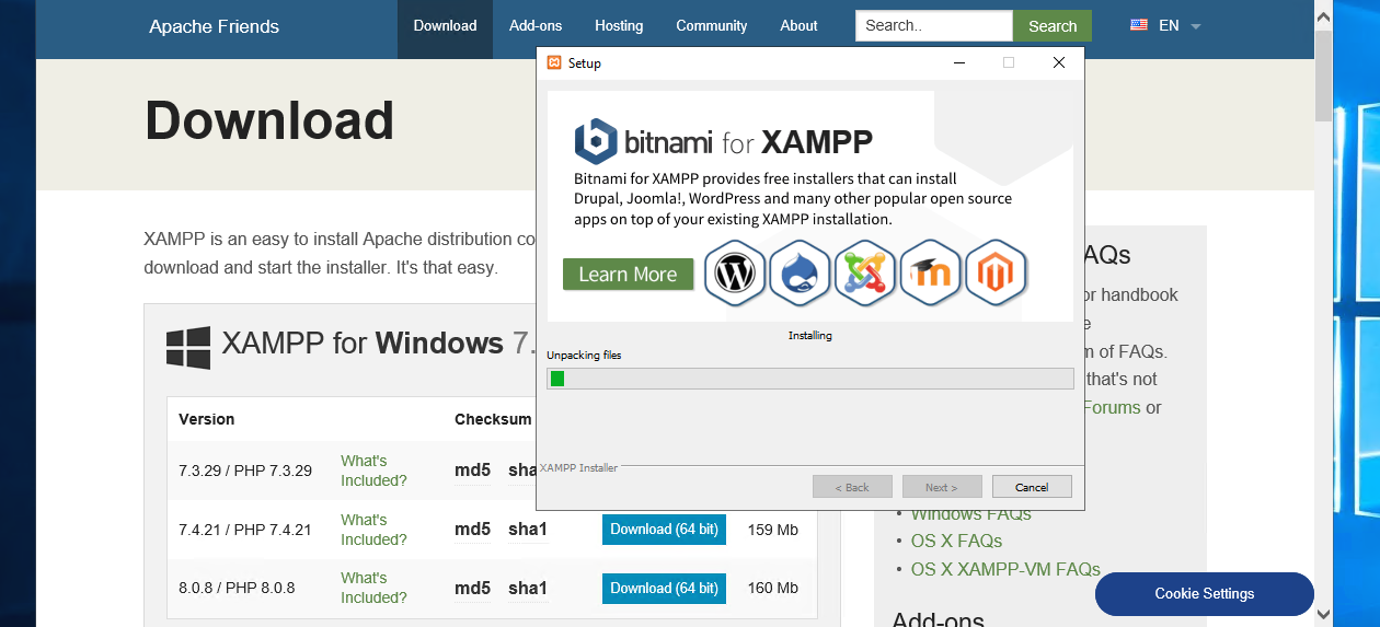 XAMPP for Windows 7.3.29/PHP 7.3.29 버전으로 다운로드를 진행하였다.