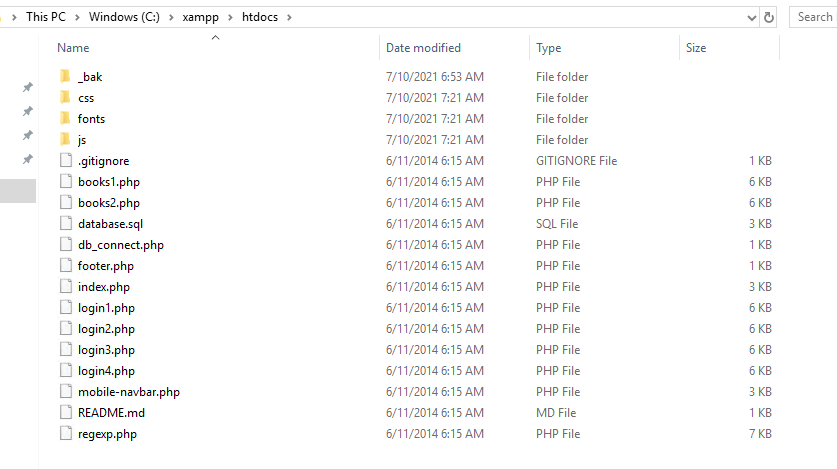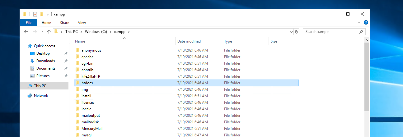 다운로드 받은 파일을 C:\xampp\htdocs 폴더로 복사하였다.