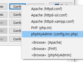 이를 해결하기 위해서 Apache의 Config로 들어가 phpMyAdmin에서 php파일을 수정해주었다.