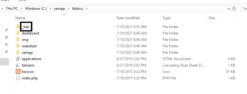 _bak이라는 이름의 새로운 폴더를 만들고, 기존에 있는 파일들을 잘라내어 붙여넣었다.