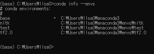 기존에 만들어둔 가상환경 이름이 생각나지 않아