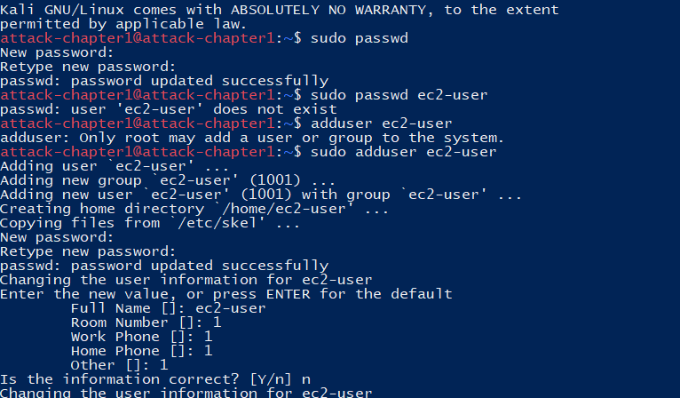 root 계정의 패스워드를 먼저 설정하고 ec2-user 계정을 추가한 다음에,