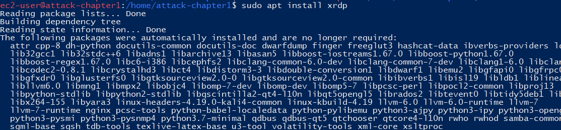 다음으로 칼리 인스턴스에서 RDP 서비스를 구성해야한다.