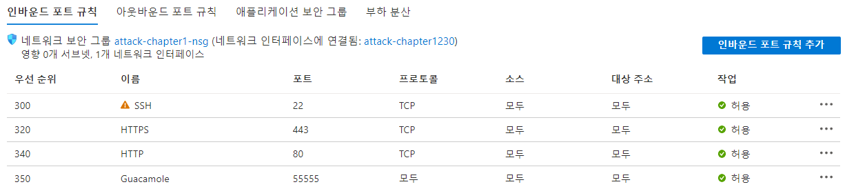 그러므로 SSH와 Guacamole 원격 접근 호트를 포워딩하는 새로운 보안 그룹이 필요하다.