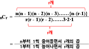 - 서로 다른 n개 중에서 r개를 선택하는 경우의 수