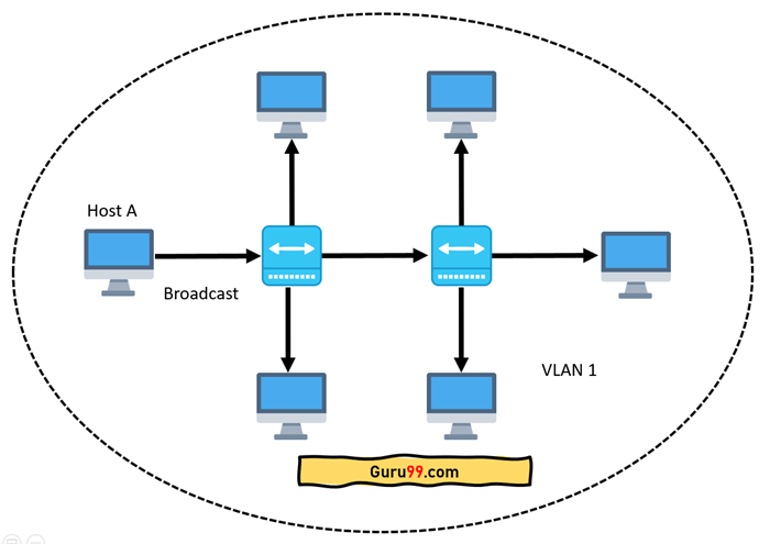 서로 다른 네트워크 그룹이기 때문에 브로드캐스트 패킷이 다른 VLAN은 전송되지 않는다.
