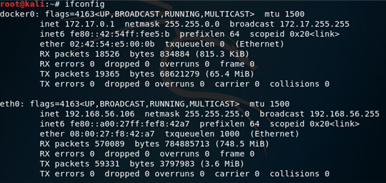 ifconfig를 통해 칼리리눅스의 ip주소를 확인해준다.