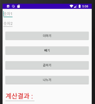 android:text="계산결과 : "/>