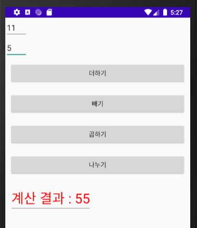 - 두 수를 입력하고 해당 연산 버튼을 누르면 계산 결과를 출력하는 계산기