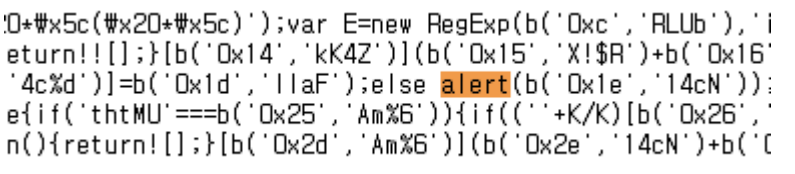 일단 debug me라는 알림창이 떴으므로 스크립트 중 alert가 있는지 검색해 보았다.