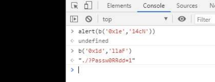 그렇다면 else 부분뒤가 alert이므로 그전에 b('0x1d','llaF')를 한번 입력해보았다.