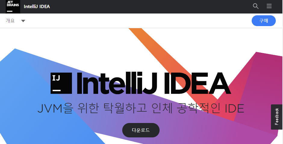 JET BRAINS(www.jetbrains.com/ko-kr/idea/)로 들어가서 IntelliJ IDEA 환경의 Community 버전을 다운로드한다.