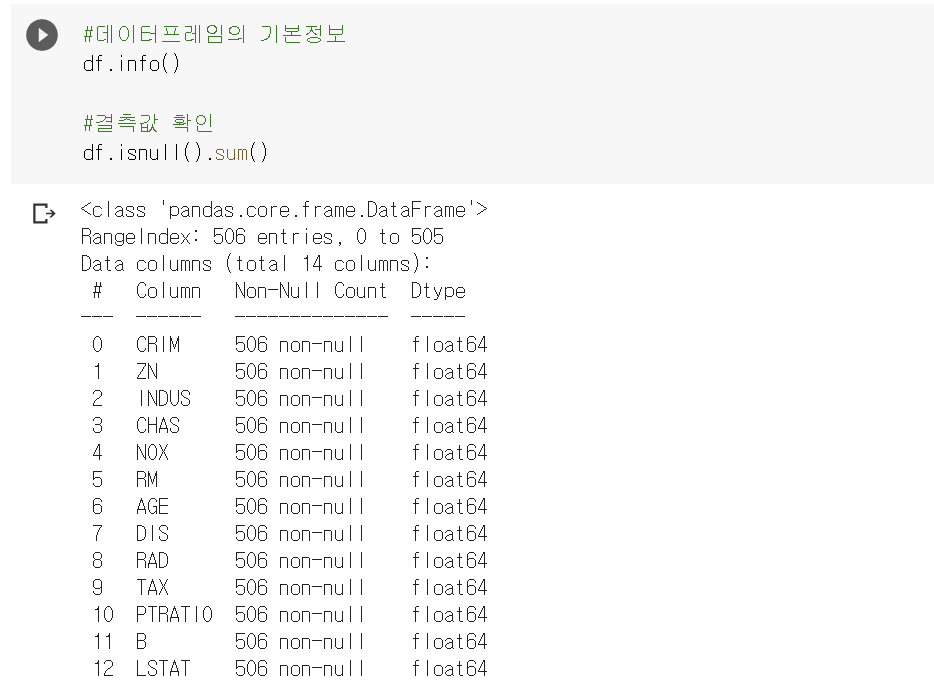 RM 변수와 상관 계수가 0.69이고, LSTAT 변수와 -0.73으로 높은 편이다.